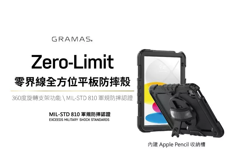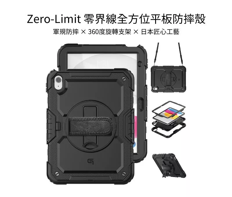 Gramas iPad A16 / 第10代 11吋 Zero-Limit 零界線全方位平板防摔殼-黑